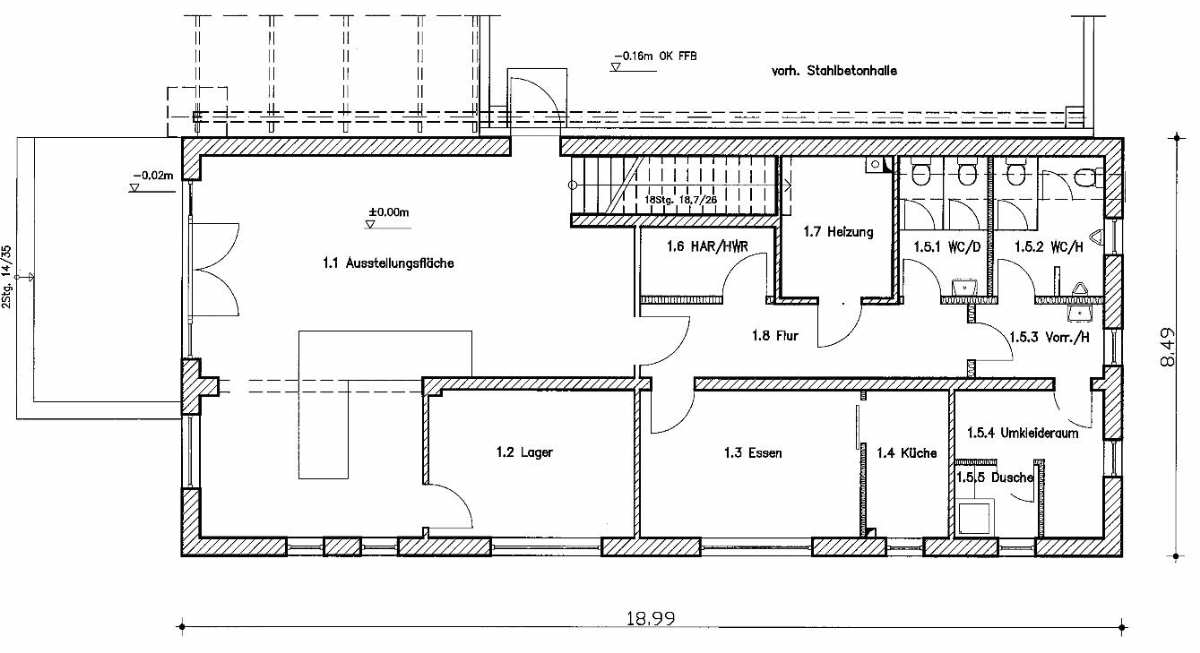 - Neubau eines Bürogebäudes als Kopfanbau an bestehende Halle, 2-geschossig auf eigenständiger Gründung