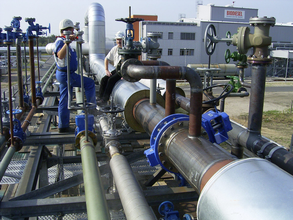 - Verlegung von Produktrohrleitung auf Rohrbrücken Dampf 3,5 und 24 bar, Druckkondensat, Stickstoff, VE-Wasser, Druckluft